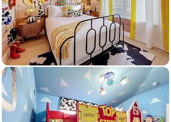 The accommodation is nestled in the Celebration district, nearly a 10-minute drive from the Avatar Flight of Passage. Disney's Blizzard Beach Water Park is 3.8 km away and Orlando International airport is 40 km from The Roundup Retreat! Villa.